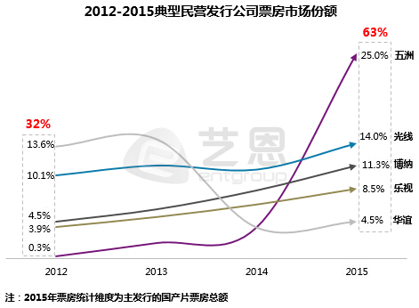 根據(jù)藝恩研究報(bào)告顯示,華誼兄弟從2012年的13.6%的市場(chǎng)份額一路跌至2015年的4.5%,而由萬達(dá)影視牽頭的五洲發(fā)行市場(chǎng)份額一路從0.3%飆升至25%,華誼的電影份額被一路碾壓。而萬達(dá)影視也即將以注入上市公司的方式登陸A股市場(chǎng)。