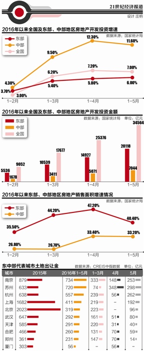 21世紀(jì)經(jīng)濟(jì)研究院比照數(shù)據(jù)發(fā)現(xiàn),僅開發(fā)投資數(shù)據(jù)的月度波動(dòng)并不足見房地產(chǎn)市場的冷熱狀況,因?yàn)檫@受不同地區(qū)的供地節(jié)奏影響較大。比如在5月,一些中部熱點(diǎn)城市的土地供應(yīng)明顯減少,造成了投資失速的狀況。