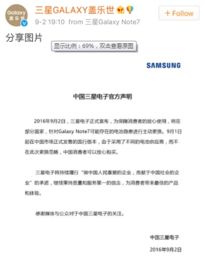 三星終于宣布:在中國大陸召回1858部Note7