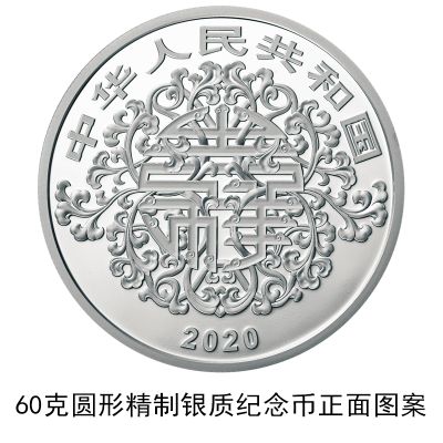 60克圓形銀質(zhì)紀(jì)念幣為精制幣,含純銀60克,直徑40毫米,面額20元,成色99.9%,最大發(fā)行量20000枚。