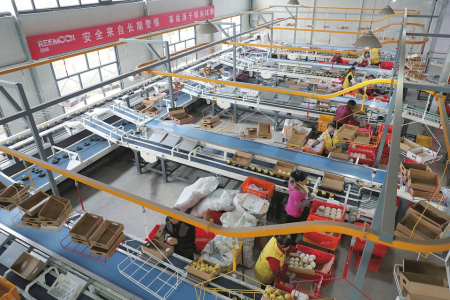 11月14日,原平市同川鎮(zhèn)劉河底村同川梨果倉儲(chǔ)配送中心自動(dòng)化選果車間內(nèi),工人們正在篩選、包裝產(chǎn)品。近年來,該市發(fā)揮“一村一品”地理優(yōu)勢,深耕梨果產(chǎn)業(yè)鏈,建設(shè)與現(xiàn)代農(nóng)業(yè)產(chǎn)業(yè)發(fā)展相適應(yīng)的農(nóng)產(chǎn)品冷鏈物流體系,助力當(dāng)?shù)剞r(nóng)產(chǎn)品對外銷售。