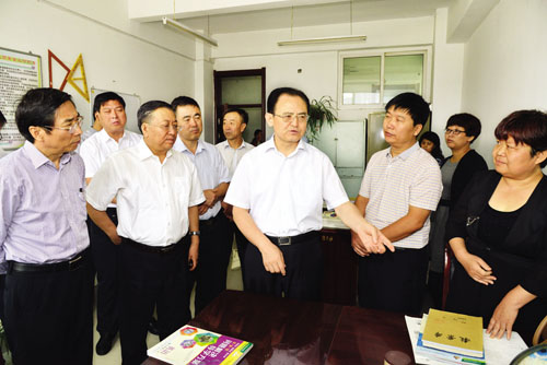 本報訊(記者任逢春)帶著溫馨祝福,送去濃濃關(guān)懷。在第32個教師節(jié)來臨之際,9月9日,市委書記李俊明帶領(lǐng)市直有關(guān)部門負(fù)責(zé)人深入城鄉(xiāng)學(xué)校,向奮戰(zhàn)在一線的教育工作者致以節(jié)日祝賀和問候,并就基礎(chǔ)教育工作進(jìn)行調(diào)研。李俊明強(qiáng)調(diào),教育事業(yè)關(guān)系千家萬戶,關(guān)系子孫后代,要堅(jiān)持改革、規(guī)范、發(fā)展,在促進(jìn)教育的均衡發(fā)展與人的全面發(fā)展上下功夫,在著力解決因教致貧、因教返貧,斬斷教育貧困代際傳遞上下功夫,為我市全面脫貧、全面小康提供智力支持和人才保障。市委常委梁潔等一同調(diào)研慰問。