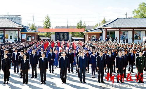 忻州市革命烈士陵園內(nèi),翠柏列陣,巍然聳立的紀(jì)念碑上“革命烈士永垂不朽”八個(gè)大字蒼勁有力。廣場(chǎng)上,部隊(duì)官兵、武警官兵、公安干警、應(yīng)急民兵、學(xué)校師生、機(jī)關(guān)干部、社會(huì)團(tuán)體和志愿者代表等社會(huì)各界人士整齊列隊(duì),靜靜肅立。市委、市人大、市政府、市政協(xié)、忻州軍分區(qū),忻府區(qū)委、區(qū)人大、區(qū)政府、區(qū)政協(xié),人民團(tuán)體和各界群眾敬獻(xiàn)的花籃依次擺放在紀(jì)念碑基座前廣場(chǎng)上。