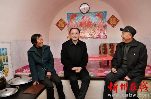 圖為省人大常委會副主任、市委書記李俊明在偏關(guān)縣新關(guān)鎮(zhèn)高家上石會村貧困戶高長后家,聽說去年收入六萬元,高興地鼓勵他今年再大干增收。本報記者劉紀森攝