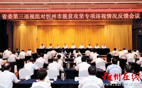 圖為省委第三巡視組對忻州市脫貧攻堅(jiān)專項(xiàng)巡視情況反饋會議會場。