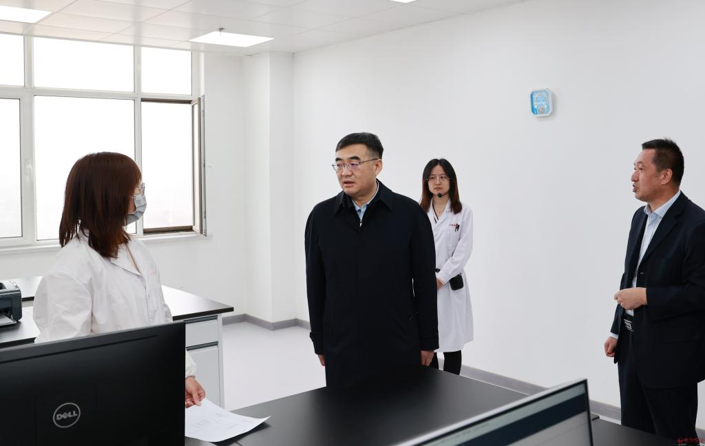 在業(yè)務(wù)大廳。張存良 攝 3月20日,市委副書記、市長(zhǎng)李建國(guó)深入市綜合檢驗(yàn)檢測(cè)中心調(diào)研,市政府秘書長(zhǎng)張艮生,市應(yīng)急管理局、市場(chǎng)監(jiān)管局負(fù)責(zé)人參加。 作為國(guó)家法蘭鍛件產(chǎn)品質(zhì)量檢驗(yàn)檢測(cè)中心(山西)、山西省雜糧產(chǎn)品質(zhì)量檢驗(yàn)中心和忻州市檢驗(yàn)檢測(cè)研究院所在地,市綜合檢驗(yàn)檢測(cè)中心是由原市質(zhì)量技術(shù)監(jiān)督檢驗(yàn)測(cè)試所、市食品藥品檢驗(yàn)所、市糧食質(zhì)量監(jiān)測(cè)中心、市農(nóng)產(chǎn)品質(zhì)量安全檢驗(yàn)監(jiān)測(cè)中心、市畜禽產(chǎn)品質(zhì)量安全檢驗(yàn)監(jiān)測(cè)中心、市特種設(shè)備監(jiān)督檢驗(yàn)所6個(gè)市級(jí)檢驗(yàn)檢測(cè)機(jī)構(gòu)整合而成,具備食品、藥品、農(nóng)產(chǎn)品、法蘭及鍛件產(chǎn)品、特種設(shè)備等眾多專業(yè)領(lǐng)域檢驗(yàn)檢測(cè)能力。李建國(guó)先后來到辦公區(qū)和液相、液質(zhì)、氣相等實(shí)驗(yàn)區(qū),察看設(shè)施設(shè)備,詳細(xì)了解人員編制、人才引進(jìn)、業(yè)務(wù)范圍、收費(fèi)標(biāo)準(zhǔn)等情況。