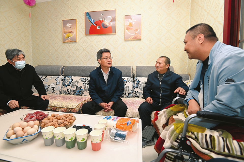 4月21日下午,省委書記藍(lán)佛安來(lái)到忻州市定襄縣晉昌鎮(zhèn)北城社區(qū),了解脫貧群眾郝生偉、郝華君父子二人的身體、生活狀況和享受救助政策情況。本報(bào)記者史曉波攝