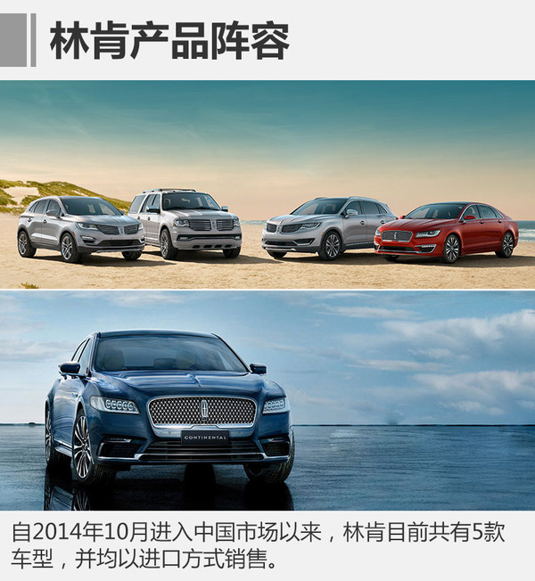 2014年10月,林肯正式進入中國市場,建立獨立經(jīng)銷商網(wǎng)絡(luò),同時帶來的還有兩款布局中型豪華轎車和中型豪華SUV市場的全新車型MKZ和MKC。作為福特旗下唯一的豪華品牌,林肯秉承美式豪華品牌的風格,極力打造不同于BBA式的產(chǎn)品特征。