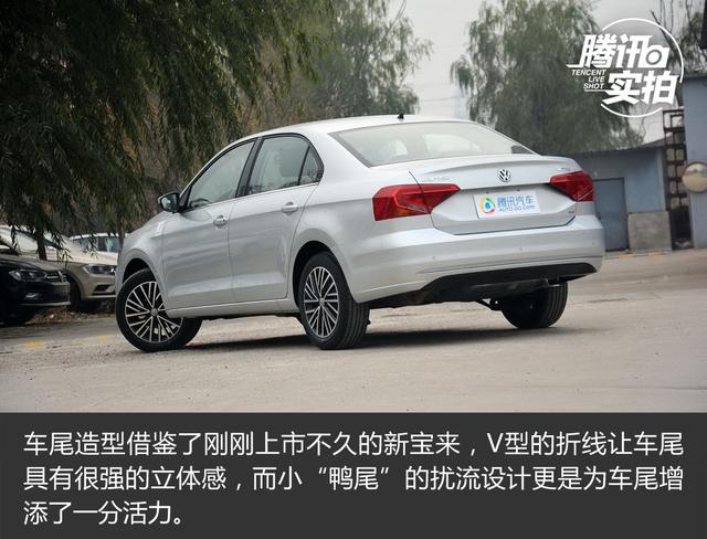 車身側(cè)面沒有做太大改變,延續(xù)了老款車型簡(jiǎn)單流暢的線條感。后視鏡的造型也更富棱角,側(cè)轉(zhuǎn)向燈從翼子板移至后視鏡,同時(shí)采用了LED光源。門把手采用了與車身同色的設(shè)計(jì),上方增加的鍍鉻裝飾條恰到好處。雙色多幅輪轂是一大亮點(diǎn),造型動(dòng)感時(shí)尚。采用韓泰KINERGY EX輪胎,尺寸為195/55 R16。制動(dòng)系統(tǒng)為前輪通風(fēng)盤式,后輪鼓式。車尾造型借鑒了剛剛上市不久的新寶來,V型的折線讓車尾具有很強(qiáng)的立體感,而小“鴨尾”的擾流設(shè)計(jì)更是為車尾增添了一分活力。立體造型的尾燈與車尾的折線融為一體,內(nèi)部折線的造型,具有很高的辨識(shí)度。車尾的數(shù)字180代表這臺(tái)車裝配的是1.5L自然吸氣發(fā)動(dòng)機(jī)。
