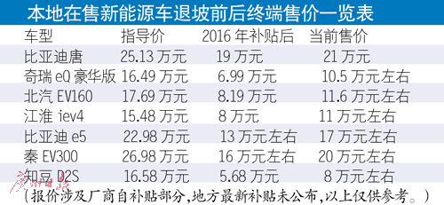 春節(jié)剛過(guò),原計(jì)劃買輛純電動(dòng)車上下班用的番禺市民劉先生,在去4S店轉(zhuǎn)了一圈后,開始猶豫了。原本看中的一款車,最終購(gòu)車預(yù)算比去年年底多了好幾萬(wàn)元。車商告訴他,因?yàn)椤把a(bǔ)貼退坡”,1月份還能以15.98萬(wàn)元買到的一輛純電動(dòng)新能源汽車,現(xiàn)在漲到20.38萬(wàn)元左右。劉先生表示,補(bǔ)貼少已成定局,他決定與家人再等兩三個(gè)月,看有沒有性價(jià)比更高的新能源車可選,不然就將配置需求降低,買一輛更便宜的電動(dòng)車。