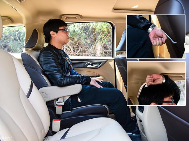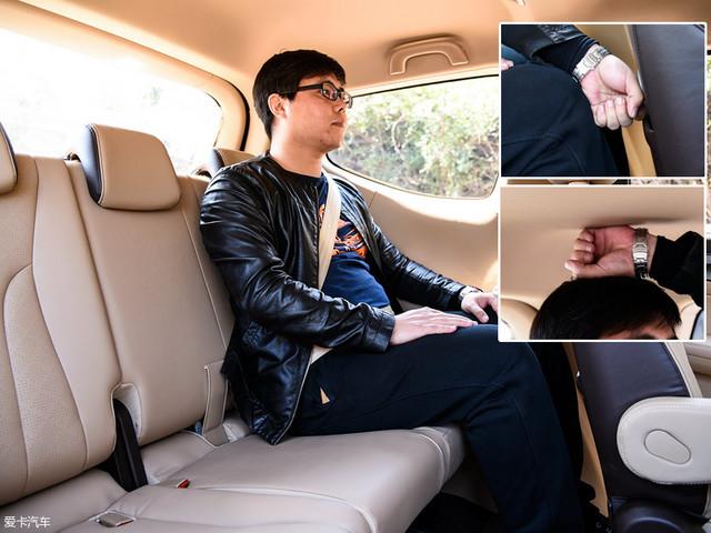 保持前排座椅不動,同一體驗(yàn)者來到第二排,頭部空間同樣剩余一拳多,腿部空間也是一拳有余。