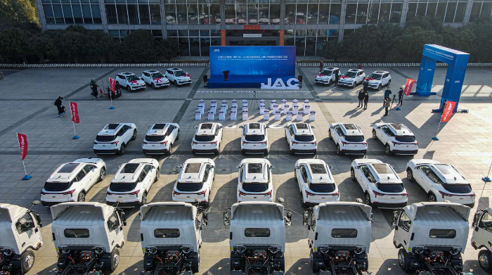 江淮汽車(chē)出口挪威500臺(tái)e-JS4暨法國(guó)西班牙100臺(tái)電動(dòng)輕卡發(fā)車(chē)儀式