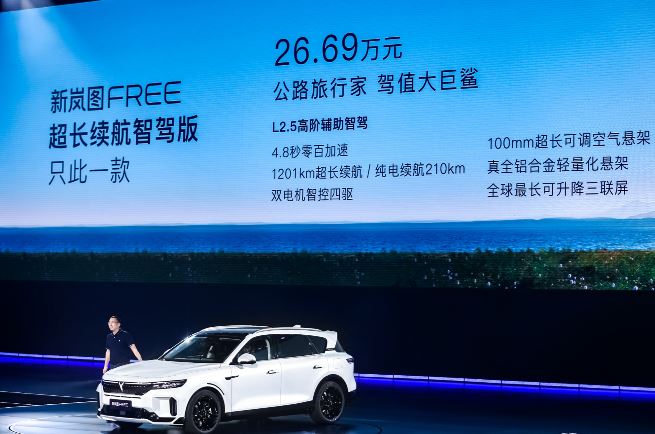 8月19日,新嵐圖FREE在2023 VOYAH NIGHT嵐圖用戶之夜正式上市,售價26.69萬元。新嵐圖FREE采用新外觀、新內(nèi)飾、新動總、新智駕,定位“智駕游大五座SUV”,首搭百度Apollo Highway Driving Pro領(lǐng)航輔助智駕;全系標配四驅(qū)系統(tǒng)和空氣懸掛;采用1.5T深度米勒循環(huán)增程器,CLTC綜合續(xù)航里程達到1201km,純電續(xù)航里程210km,是嵐圖FREE車型自上市以來的首次全面煥新升級。