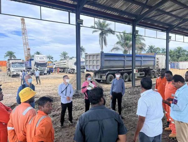 東風人員在尼日利亞CNG牽引車工地現(xiàn)場與客戶交流