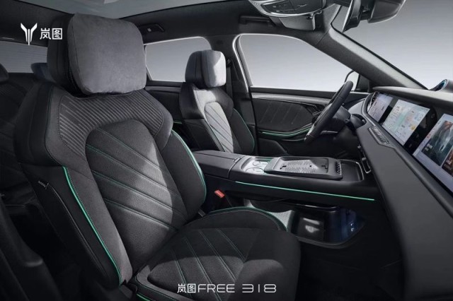嵐圖FREE 318的內(nèi)飾主要采用了全新的黑+綠配色,大量觸感出色的軟性材質(zhì),滿足視覺和觸覺雙重質(zhì)感,新車不僅搭載了能夠滿足當(dāng)下的智能化體驗,像前排座椅頭枕等也進一步提升了視覺體驗。