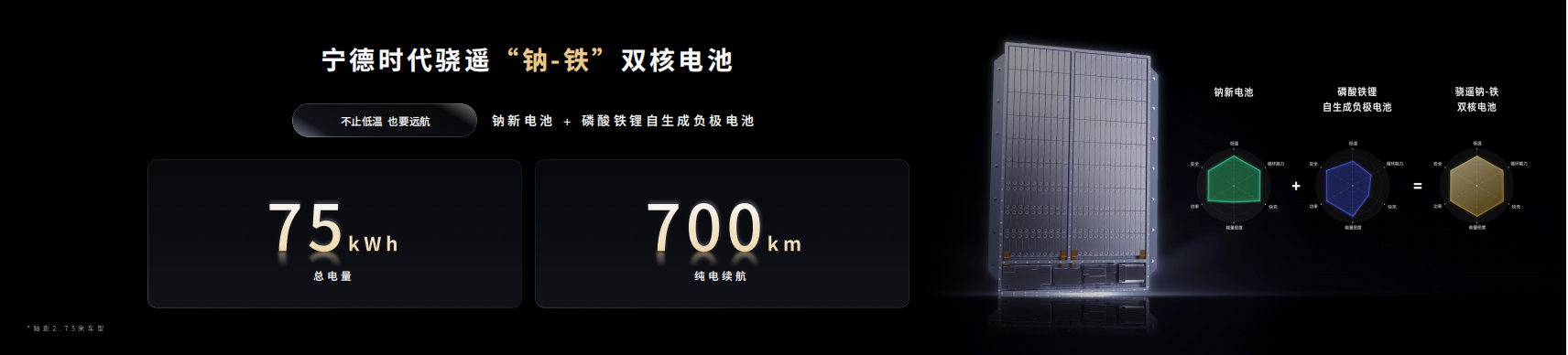 現(xiàn)場發(fā)布了三種跨化學(xué)體系的雙核解決方案: 鈉-鐵雙核電池——:鈉新電池+磷酸鐵鋰自生成負極電池,充分利用鈉新電池的低溫性能,為用戶帶來不止低溫更要遠航的極致體驗 。