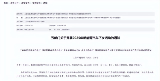 【環(huán)球網(wǎng)財(cái)經(jīng)綜合報(bào)道】6月3日,工業(yè)和信息化部等五部門聯(lián)合發(fā)布通知,開展2025年新能源汽車下鄉(xiāng)活動(dòng),以補(bǔ)齊鄉(xiāng)村新能源汽車消費(fèi)短板,構(gòu)建綠色出行體系。