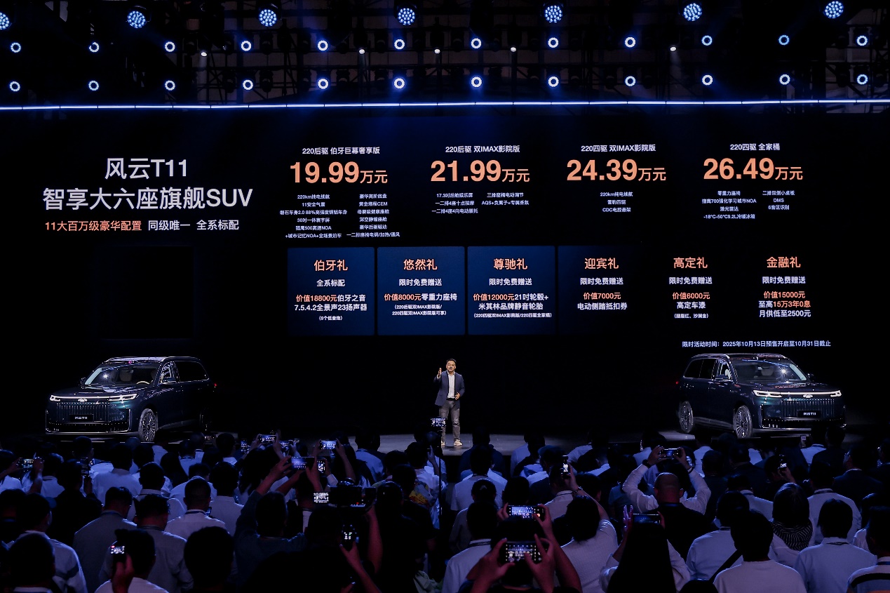 10月13日,以“兌現(xiàn)”為主題的風(fēng)云T11家庭品鑒日暨預(yù)售發(fā)布會(huì)在安徽蕪湖圓滿收官。作為風(fēng)云品牌煥新后的首款旗艦級SUV,風(fēng)云T11定位為“智享大六座旗艦SUV”。新車以“頂格對標(biāo)”為理念,憑借“超大更好”四大核心價(jià)值、三大沉浸式場景與11大全系標(biāo)配,兌現(xiàn)用戶對品質(zhì)生活的全維期待。