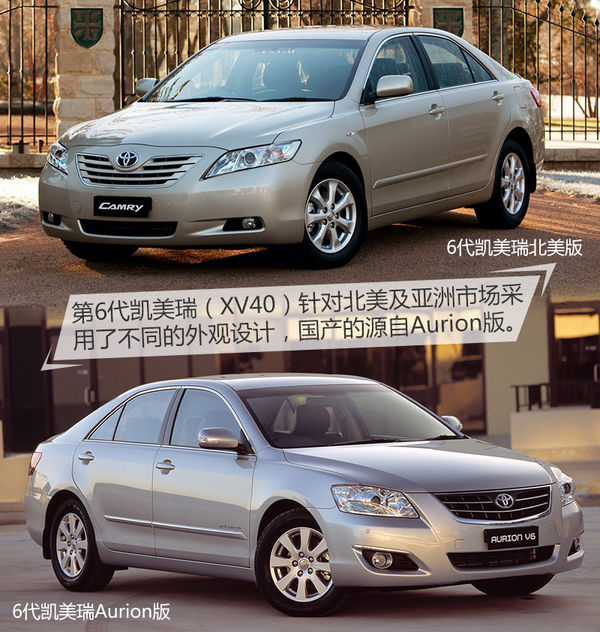 第6代凱美瑞(XV40)誕生于2006年,6月17日正式上市,由廣汽豐田進(jìn)行本土化生產(chǎn)。雖然是豐田的全球化車型,但是XV40針對北美及亞洲市場采用了不同的外觀設(shè)計。北美版的車燈更加“鋒利”更加年輕運(yùn)動,而國產(chǎn)的凱美瑞則采用了更加符合東方審美的亞洲版造型,又被稱作Prestige版或Aurion版。