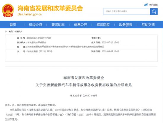 8月1日,海南省發(fā)展和改革委員會發(fā)布《關于完善新能源汽車車輛停放服務收費優(yōu)惠政策的指導意見》(以下簡稱《意見》),提出一系列指向清晰的指導意見。據此,海南年內將出臺新能源汽車車輛停放服務收費優(yōu)惠政策,不僅比燃油汽車停車收費優(yōu)惠,而且新能源汽車在公共區(qū)域停車還將免費。