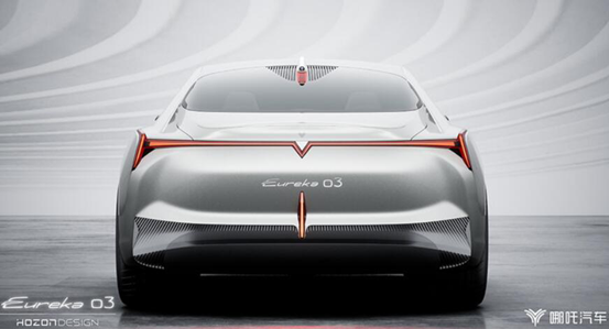 Eureka 03定位四門純電轎跑車型,就設(shè)計圖和官圖來看,新車呈現(xiàn)前短后長的造型,姿態(tài)較為動感。外觀方面,新車在車頭與車尾均采用了貫穿式燈帶設(shè)計,視覺層面拉寬了車身。