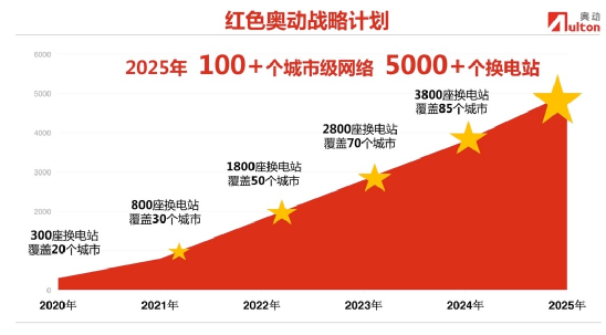 4月19日,奧動以“極速”與“共享”雙擎啟動“紅色奧動戰(zhàn)略計劃”:打造100個以上城市級換電服務網絡;建設5000座以上20秒極速換電站;形成服務200萬車輛規(guī)模以上的多品牌車型共享換電平臺。