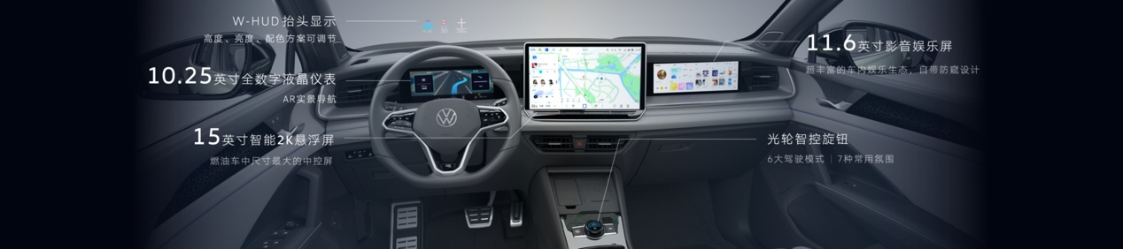 燃油車智能座艙扛把子:智艙就要好用又想用 基于“好用”和“想用”的理念,全新探岳L 智能座艙以5+X多屏多模交互系統(tǒng)為核心。其中,“5”即5塊屏幕,包含了15英寸2K中控屏、11.6英寸副駕影音娛樂(lè)屏,搭配豐富的車內(nèi)娛樂(lè)生態(tài),靈動(dòng)又默契;另外,10.25英寸全數(shù)字液晶儀表,能實(shí)現(xiàn)AR實(shí)景導(dǎo)航,導(dǎo)航信息與實(shí)景路面融合,讓駕駛更加專注;抬頭顯示HUD,安全好用;可觸摸光輪智控旋鈕,調(diào)節(jié)音量和切換駕駛模式,更加便捷。