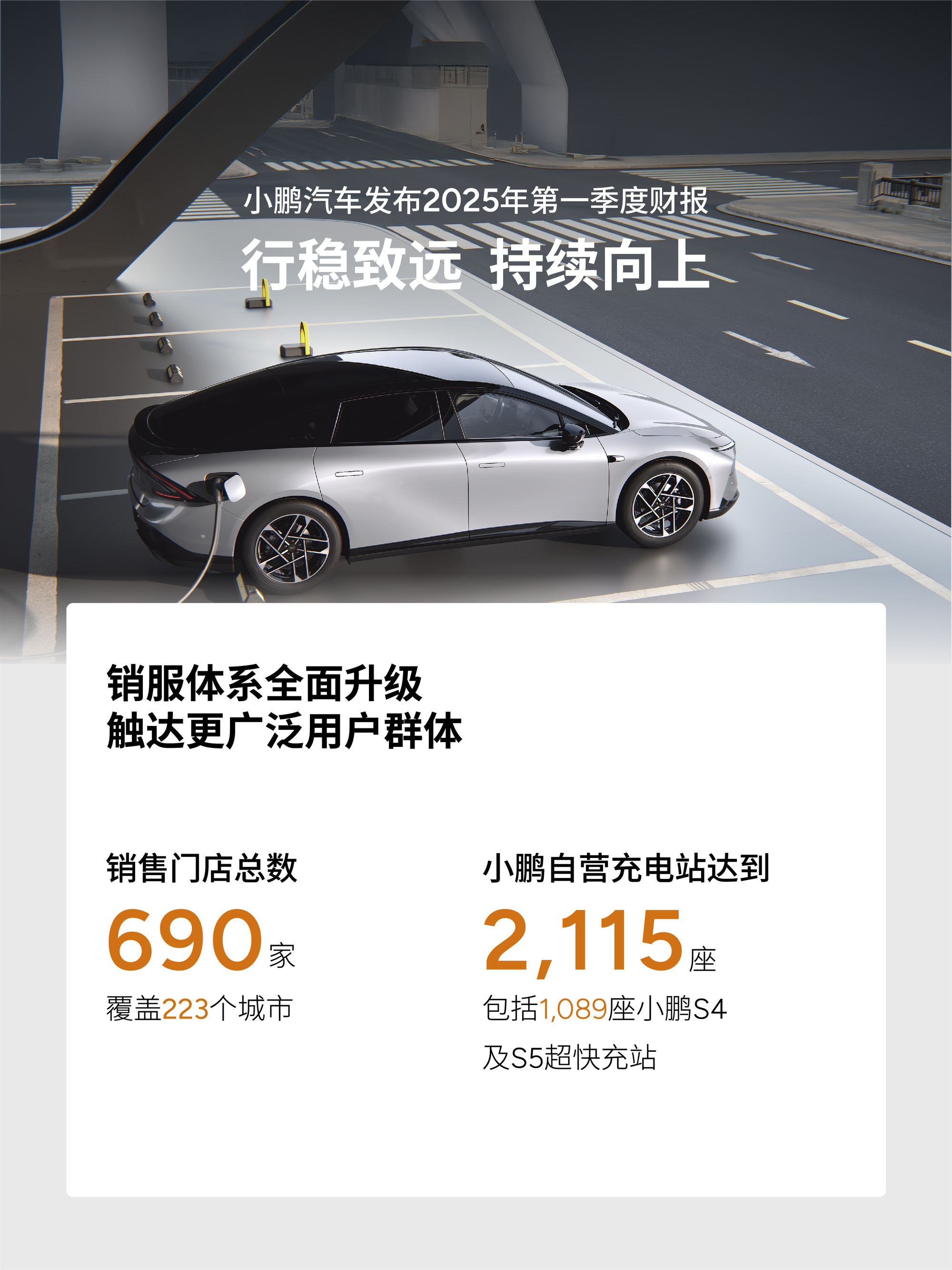 為了支持銷(xiāo)售,小鵬汽車(chē)正在加快銷(xiāo)售與充電網(wǎng)絡(luò)布局。截至3月31日,小鵬汽車(chē)擁有共計(jì)690家門(mén)店,覆蓋223座城市;自營(yíng)充電站網(wǎng)絡(luò)進(jìn)一步擴(kuò)展至2115座充電站,包括1089座小鵬S4及S5超快充站。
