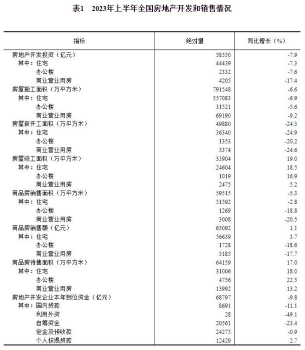 上半年,房地產(chǎn)開(kāi)發(fā)企業(yè)房屋施工面積791548萬(wàn)平方米,同比下降6.6%。其中,住宅施工面積557083萬(wàn)平方米,下降6.9%。房屋新開(kāi)工面積49880萬(wàn)平方米,下降24.3%。其中,住宅新開(kāi)工面積36340萬(wàn)平方米,下降24.9%。房屋竣工面積33904萬(wàn)平方米,增長(zhǎng)19.0%。其中,住宅竣工面積24604萬(wàn)平方米,增長(zhǎng)18.5%。