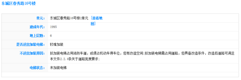北京市住房城鄉(xiāng)建設(shè)委組織各區(qū)對(duì)本轄區(qū)內(nèi)市屬老舊小區(qū)約2萬多棟既有多層住宅樓、10萬余個(gè)單元門,從建筑結(jié)構(gòu)安全、空間條件和居民意愿等方面進(jìn)行了初步摸排評(píng)估,在此基礎(chǔ)上,會(huì)同市有關(guān)部門開發(fā)了加梯地圖專欄,為居民實(shí)現(xiàn)既有住宅“加梯夢(mèng)”提供了一份詳細(xì)的攻略圖。