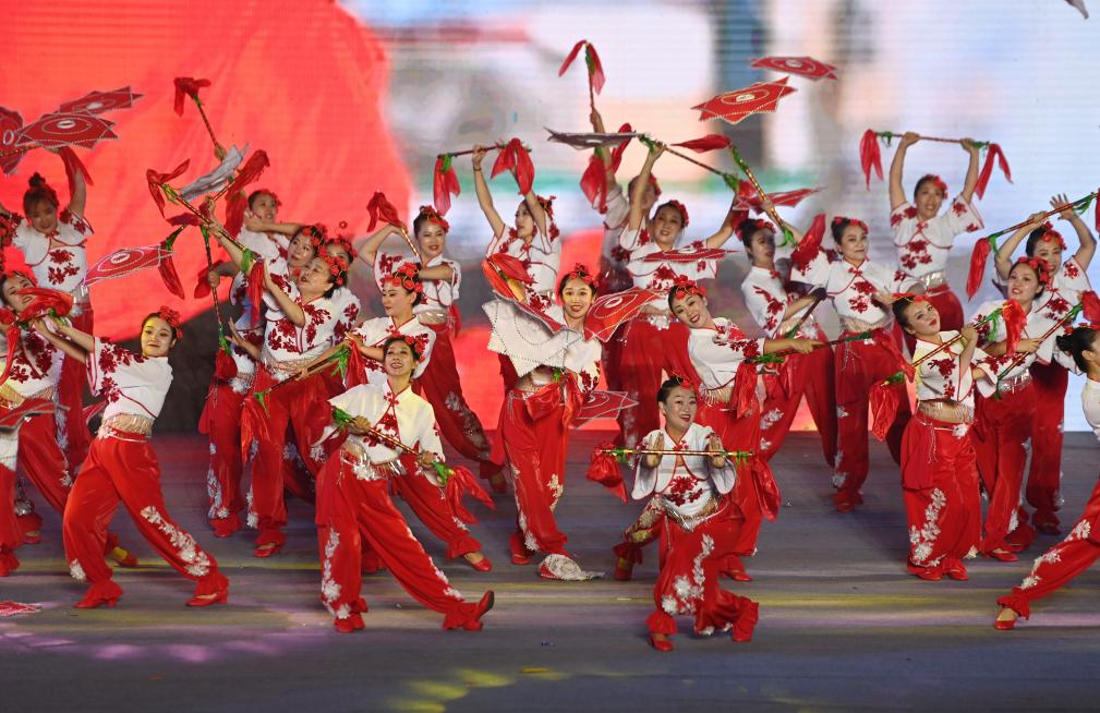9月10日,參加展演活動(dòng)的廣場(chǎng)舞團(tuán)隊(duì)在表演。新華社記者 趙子碩 攝