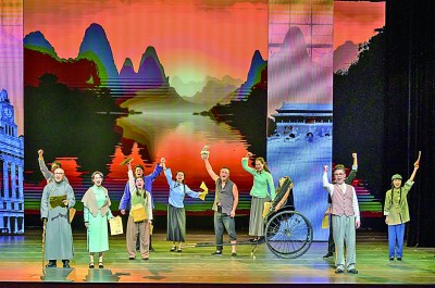 4月20日晚,紀(jì)念西南劇展80周年暨第八屆全國(guó)話劇優(yōu)秀劇目展演在廣西省立藝術(shù)館拉開帷幕。圖為現(xiàn)場(chǎng)劇照。粟俊攝/光明圖片