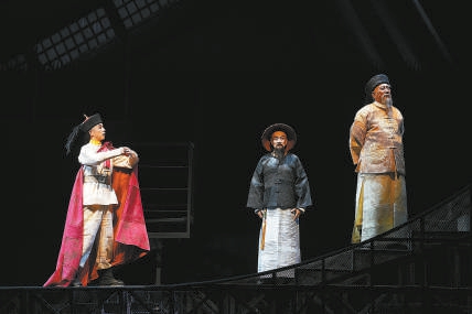 王雷、關(guān)棟天、張頁(yè)川分別飾演鄧世昌、丁汝昌、李鴻章(從左至右)。記者 方非 攝 繼原創(chuàng)話劇《林則徐》之后,國(guó)家大劇院又一部“歷史人物系列”大戲、原創(chuàng)話劇《鄧世昌》于4月27日迎來(lái)首演。晚清政局內(nèi)憂外患,利益錯(cuò)綜復(fù)雜,鄧世昌作為一名小小的水師管帶,有太多事情無(wú)力改變,但他無(wú)論如何不肯隨波逐流——以浩然之氣撕破腐朽長(zhǎng)夜的忠貞之志貫穿作品始終,為《鄧世昌》全劇奠定了精衛(wèi)填海般孤勇悲壯的情感基調(diào)。 話劇《鄧世昌》在寂靜的深海中開(kāi)篇,致遠(yuǎn)艦銹跡斑斑,鄧世昌的英靈守衛(wèi)著它,徘徊不去。英雄傾訴著永不泯滅的報(bào)國(guó)壯志,由此展開(kāi)少年立志、青年從軍、中年殉國(guó)的人生軌跡。編劇李寶群為《鄧世昌》打造的劇本極具文學(xué)性,如散文詩(shī)般連綴起鄧世昌一生中的重要節(jié)點(diǎn),臺(tái)詞凝練雋永,擲地有聲。 作品對(duì)致遠(yuǎn)艦管帶鄧世昌、晚清重臣李鴻章、北洋水師提督鄧世昌的塑造尤其突出:眼界開(kāi)闊的鄧世昌早已預(yù)見(jiàn)北洋水師敗落的結(jié)局,卻苦于朝廷昏聵、同僚麻木,無(wú)力挽大廈于將傾,最終他將滿腔熱血盡付“撞沉吉野”的吶喊,壯烈犧牲;李鴻章百般無(wú)奈,隱忍難言;丁汝昌夾在兩人之間,既賞識(shí)鄧世昌的忠勇之心,又難舍李鴻章的知遇之恩,左右為難。分別飾演這三個(gè)角色的主演王雷、張頁(yè)川、關(guān)棟天表現(xiàn)相當(dāng)?shù)轿唬渲?,第一次真正參演古裝戲的王雷堪稱(chēng)一個(gè)亮點(diǎn),無(wú)論臺(tái)詞還是形體,王雷都拿捏得頗有幾分“古意”,令人信服。 舞美設(shè)計(jì)季喬以黑灰的主色調(diào)籠罩全劇,一如那個(gè)風(fēng)雨如晦的時(shí)代般陰郁壓抑,矩陣式的“龍骨”與平行的“透屏”交疊,靈活輕盈地帶動(dòng)壯闊的艦船、荒誕的宮廷、溫情的鄧家等場(chǎng)景和時(shí)空的轉(zhuǎn)換。影像的極致運(yùn)用是《鄧世昌》的一大特色,多媒體設(shè)計(jì)胡天驥充分利用近500平方米的冰屏,把洶涌如山的層層波濤、黃海海戰(zhàn)中連天的戰(zhàn)火、飛速前進(jìn)的戰(zhàn)艦表現(xiàn)得栩栩如生。 但在另一個(gè)層面上,存在感太強(qiáng)的影像偶爾會(huì)模糊劇情的重點(diǎn),一些原本要依靠戲劇沖突、演員表演的高潮片段被影像帶過(guò),稍顯遺憾。鋪展太密的配樂(lè)也有同樣的“嫌疑”,作曲家于力為《鄧世昌》專(zhuān)門(mén)譜寫(xiě)的音樂(lè)數(shù)次將情緒推上高峰,比如,滿心憤懣的鄧世昌拔劍向天,與昔日吟誦《逍遙游》中鯤鵬之志的少年時(shí)的自己重合,激昂飽滿的配樂(lè)加上演員極為投入的詮釋?zhuān)瑢⑧囀啦龍?bào)國(guó)無(wú)門(mén)的悲憤渲染得張力十足,但用多了,有時(shí)也會(huì)沖淡戲劇本身的感染力??偟膩?lái)說(shuō),在中日甲午海戰(zhàn)130周年之際,致敬英雄的《鄧世昌》以獨(dú)到的舞臺(tái)美學(xué)、精彩表演體現(xiàn)了文藝作品應(yīng)有的責(zé)任與力量。作為剛剛首演的新劇,某些橋段、手法的分寸應(yīng)該還可以再做打磨和探索。(高倩) (責(zé)任編輯:盧相?。?/span> |