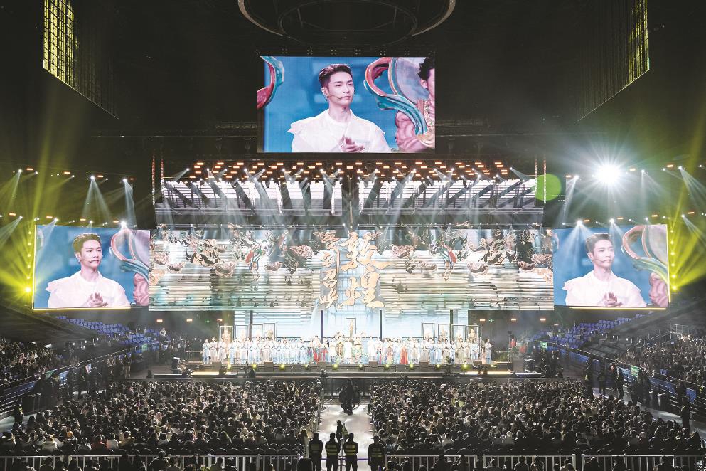 連續(xù)三晚,以數(shù)字多媒體營(yíng)造“敦煌空間”,用多元風(fēng)格的歌舞訴深情,這場(chǎng)百年追尋、千年回響將人們引入一個(gè)與我們所有人相關(guān)的敦煌。當(dāng)音樂(lè)話劇的形態(tài)與敦煌在數(shù)字時(shí)代的煥新達(dá)成內(nèi)在氣質(zhì)的高度契合,一次又一次,中華文脈在青春的律動(dòng)中擁抱觀眾。