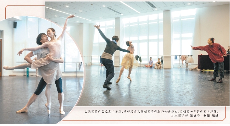 上海芭蕾舞團(tuán)已復(fù)工排練,多部經(jīng)典及原創(chuàng)芭蕾舞劇將輪番登臺(tái),為新的一年拉開(kāi)藝術(shù)序幕。均本報(bào)記者 張挺 攝 制圖:張繼