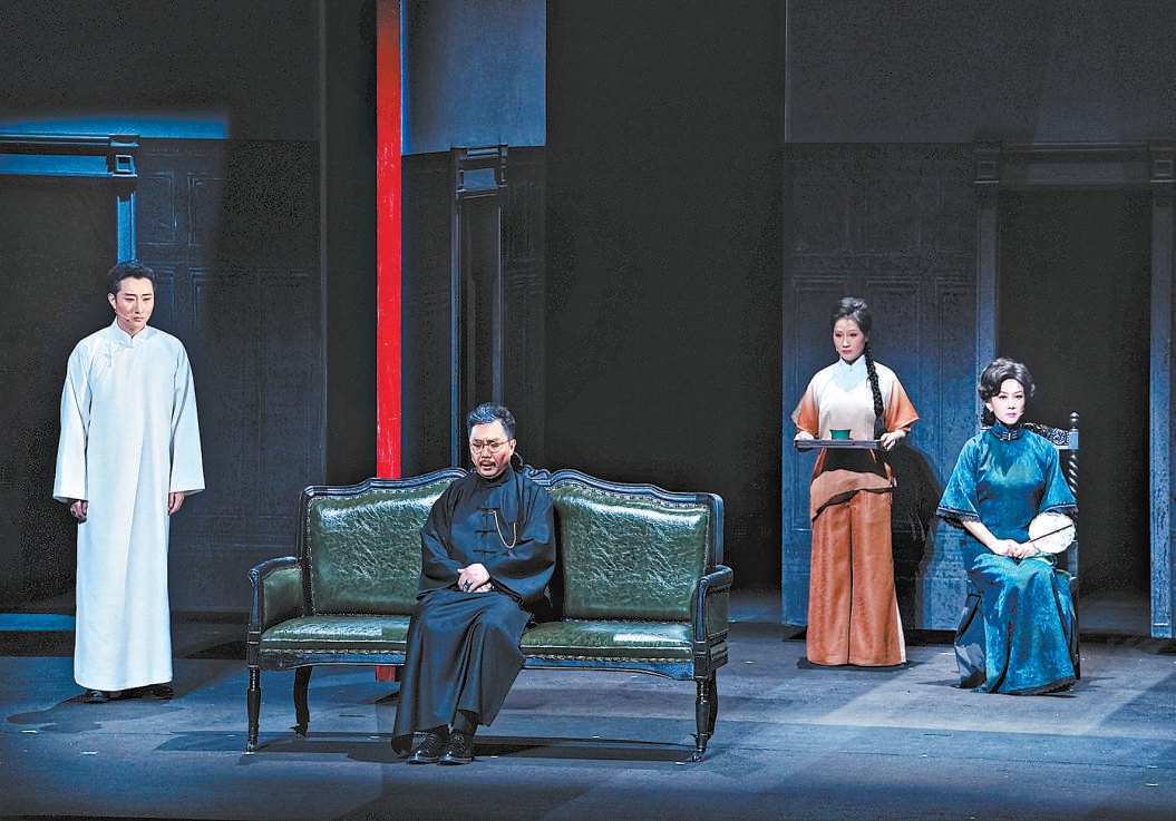 在音樂上,《雷雨》有意“收斂”了北京曲劇劇種基因里的濃郁京味兒,作曲家戴頤生雖以北京曲劇傳統(tǒng)單弦牌子曲為根基,但在傳統(tǒng)樂隊中混編西洋樂器,最大限度地為這個并非京味兒的題材匹配相稱的、民族化與交響性并重的音樂風格。北京曲劇的幾代演員堅守程式規(guī)范,以扎實的功底、細膩的表演塑造了《雷雨》中性格鮮明的一眾角色,展現(xiàn)了劇種傳承創(chuàng)新的活躍生命力。