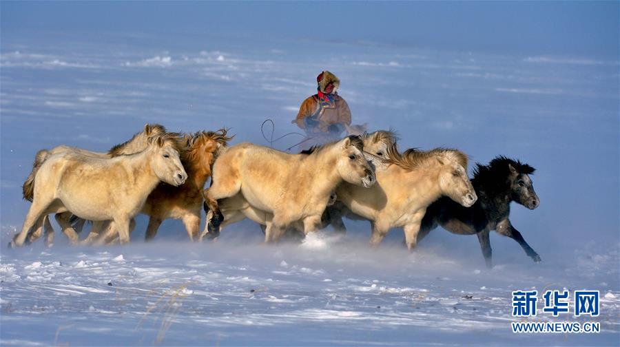 1月5日,蒙古族牧民在套馬。當(dāng)日,2016年烏珠穆沁馬文化節(jié)在內(nèi)蒙古錫林郭勒盟西烏珠穆沁旗吉仁高勒鎮(zhèn)舉行。當(dāng)?shù)孛晒抛迥撩裆碇A麗的民族服飾,帶著馬匹從四面八方趕到會(huì)場(chǎng),參加賽馬、套馬、乘馬拾物、蒙古馬選美等多項(xiàng)具有民族特色的活動(dòng),吸引大批游客前來(lái)觀看。新華社記者 任軍川 攝