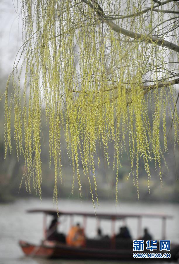 3月6日,游客在揚(yáng)州瘦西湖賞花。隨著氣溫升高,江蘇揚(yáng)州市瘦西湖景區(qū)楊柳吐綠,繁花似錦,吸引許多中外游客前來踏春賞花。 新華社發(fā)(孟德龍 攝)