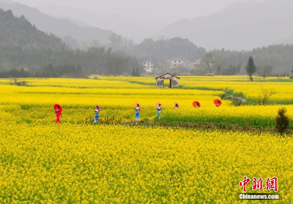 3月20日,江西省德興市海口鎮(zhèn)杜村婦女在田間花?!白咝恪薄.?dāng)日,江西德興市海口鎮(zhèn)杜村一批家庭婦女以千畝油菜花海為舞臺(tái),展示自己的才藝形象,希望宣傳家鄉(xiāng)的自然生態(tài)與人文歷史,擴(kuò)大旅游知名度和影響力。德興市??阪?zhèn)杜村交通便利,自然風(fēng)光優(yōu)美,村內(nèi)有歷史古跡和名木古樹(shù)。 胡敦煌 攝