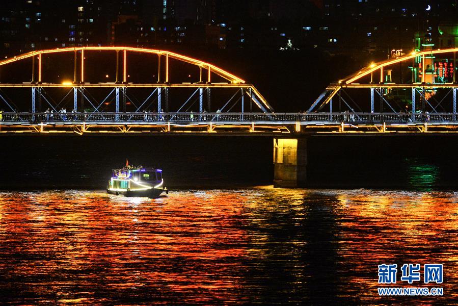 6月14日,一艘游輪從黃河蘭州段中山橋下穿過(guò)。自6月12日起,蘭州黃河游輪夏季夜航航線正式開通。據(jù)了解,作為黃河蘭州段水上旅游重點(diǎn)線路,該航線由蘭州市城關(guān)區(qū)蘭州港碼頭和白塔山碼頭始發(fā),每晚20時(shí)起開行,全程約6公里,運(yùn)行時(shí)長(zhǎng)50分鐘左右。游客可以乘坐豪華游輪欣賞黃河夜景,感受蘭州黃河風(fēng)情線別樣魅力。新華社記者 陳斌 攝