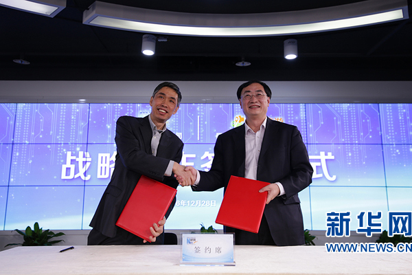 同程旅游副總裁李志莊與新華網(wǎng)常務副總裁魏紫川代表雙方簽約