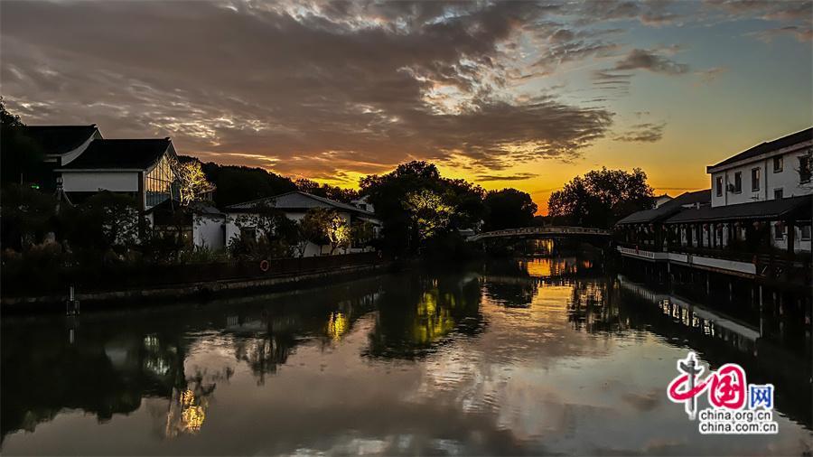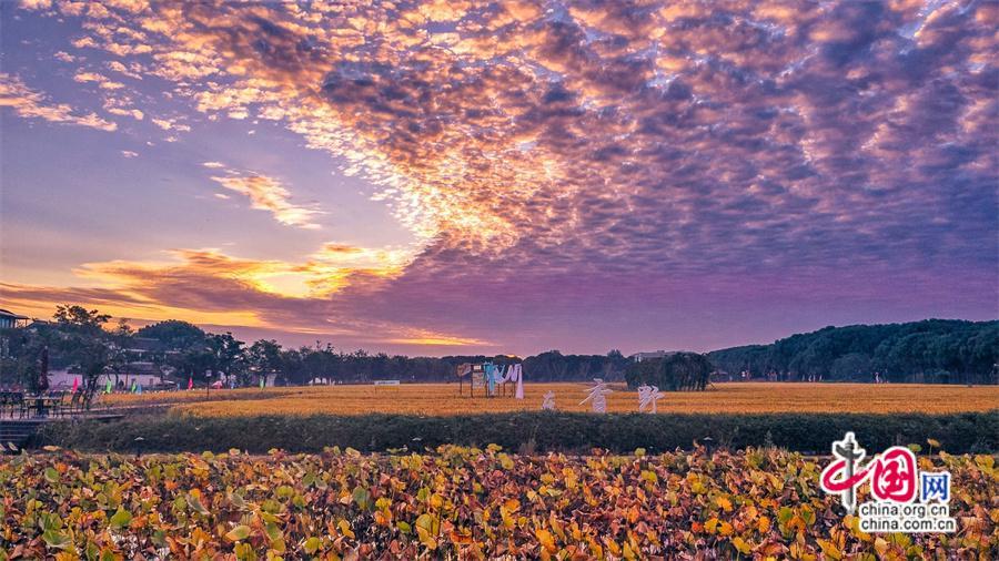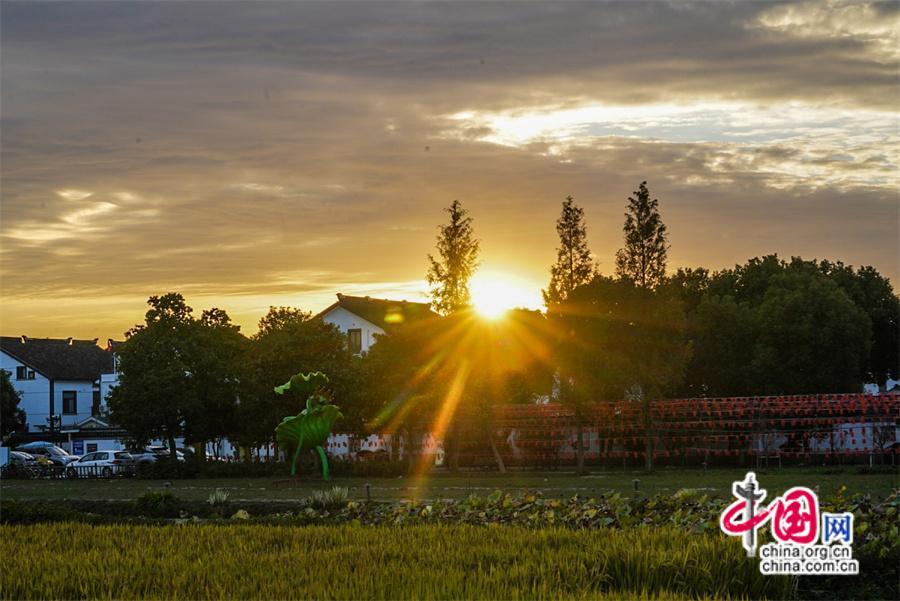 傍晚時(shí)分抵達(dá)香村,收獲了一場驚艷的落日美景,云層色彩在光線折射下不斷變化,忽而紅如火,忽而燦如金,忽而粉如煙,再到最后一抹落日的余暉撒遍整個(gè)村莊,稻田村舍,樹木小花,一切都籠罩在一片祥瑞的金光里,如夢似幻……這應(yīng)是我見到過的最美江南晚霞。