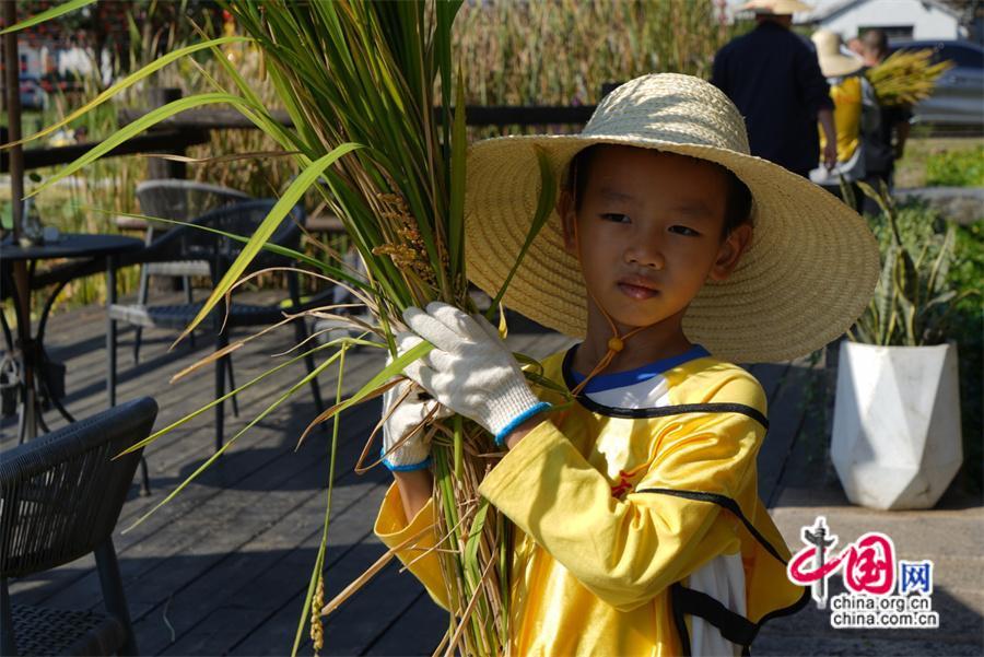 香村的管家將草帽與鐮刀發(fā)放給孩子們,再由經(jīng)驗(yàn)頗豐的伯伯示范,再到實(shí)操,一場歡樂的割稻子活動在田間展開。參與勞作,真切體會那句“粒粒皆辛苦”,在割稻子現(xiàn)場,也能感受到大人們也躍躍欲試,“這邊,這樣割,不對,不對,哎呀……我來”略顯著急的“指揮”著孩子,或許,這樣的場景也帶給家長們重回童年無憂時(shí)光的快樂。