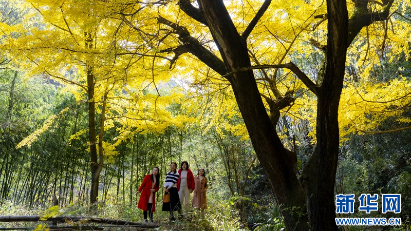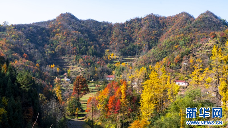 ?初冬,金色的陽(yáng)光灑在湖北省南漳縣李廟鎮(zhèn)的山林中,宛如大自然無(wú)意中打翻了調(diào)色盤(pán),呈現(xiàn)出紅色、金色、綠色交織的絢麗色彩,美如一幅幅畫(huà)卷。(華君、 劉思)