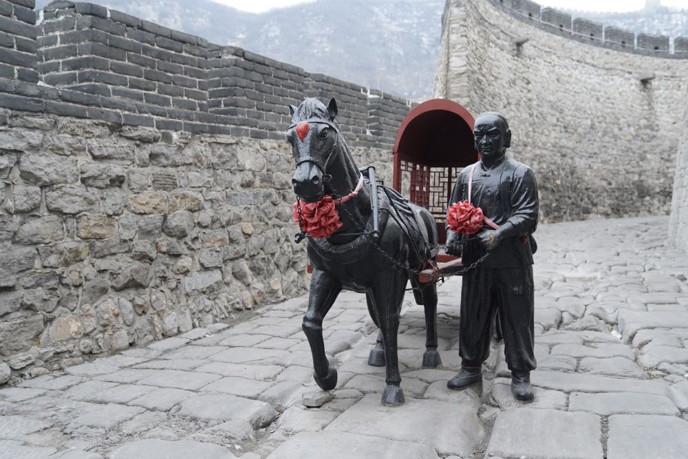 固關長城的甕城內,大約30厘米深的車轍印從城門洞下穿過,深深地鑲嵌在石板路里。游客們徜徉于井陘古道,不禁紛紛感嘆時光流逝。