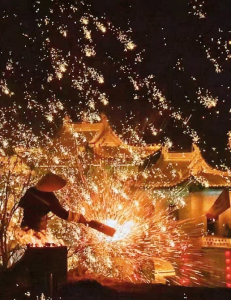 活動(dòng):來(lái)自湖南瀏陽(yáng)的專業(yè)煙花團(tuán)隊(duì)根據(jù)榆次老城環(huán)境特色,打造一場(chǎng)炫酷煙火電音的煙花秀,用零煙花瀑布技術(shù),在安全的前提下為游客帶來(lái)視覺(jué)與美的極致體驗(yàn),將極光天幕+雪景泡泡禮花相結(jié)合,以年輕人的視角與這座百年的歷史古城完美契合,迸發(fā)出新時(shí)代的活力和浪漫。今年榆次老城首次引入大型威亞表演,在電音舞臺(tái)上方演員“飛”奔而來(lái),絢爛的舞臺(tái)燈光承接美輪美奐的威亞敦煌飛天,在45分鐘的飛天表演中,一場(chǎng)傳統(tǒng)美學(xué)和現(xiàn)代流行的結(jié)合悄然展開,重回千年前的敦煌。同時(shí),老城內(nèi)整體以紅色為主色調(diào),琳瑯滿目的春聯(lián)、門神、年畫、福字、橫批、窗花等紅色喜慶元素、布置各種具有著吉祥寓意的大型燈組供游客打卡拍照。