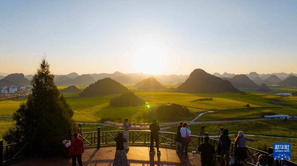 近期,云南省曲靖市羅平縣近百萬(wàn)畝油菜花相繼綻放,花海與山巒、村寨勾勒出一幅田園春景圖,吸引不少游客前來(lái)賞花踏青,感受春天的氣息。