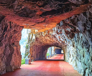 掛壁公路,顧名思義是“掛”在懸崖峭壁上的公路,它附著在石頭山體的外圍,像一條巨龍盤桓在山體上,穿行其中就像在巨龍的腹中馳騁。我國一共有七條掛壁公路,其全部位于南太行山脈,且彼此之間距離不甚遙遠,對于當?shù)卮笊骄用駚碚f是連通內(nèi)外的通道,但對于外人來說,不失為一條游覽太行美景的絕佳線路。