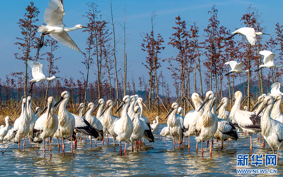 近年來(lái),廬江縣加大黃陂湖濕地保護(hù)力度,4萬(wàn)多畝的濕地環(huán)境得到較大改善。每年冬季,東方白鸛、白鶴等大量珍稀候鳥都按時(shí)來(lái)此過(guò)冬,萬(wàn)鳥齊飛的壯觀場(chǎng)面已經(jīng)成為廬江縣黃陂湖濕地最靚麗的風(fēng)景。新華網(wǎng)發(fā)(左學(xué)長(zhǎng) 攝)
