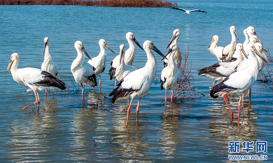 12月19日,安徽省合肥市廬江縣黃陂湖濕地,國(guó)家一級(jí)保護(hù)動(dòng)物東方白鸛在此嬉戲、覓食,自由飛翔。